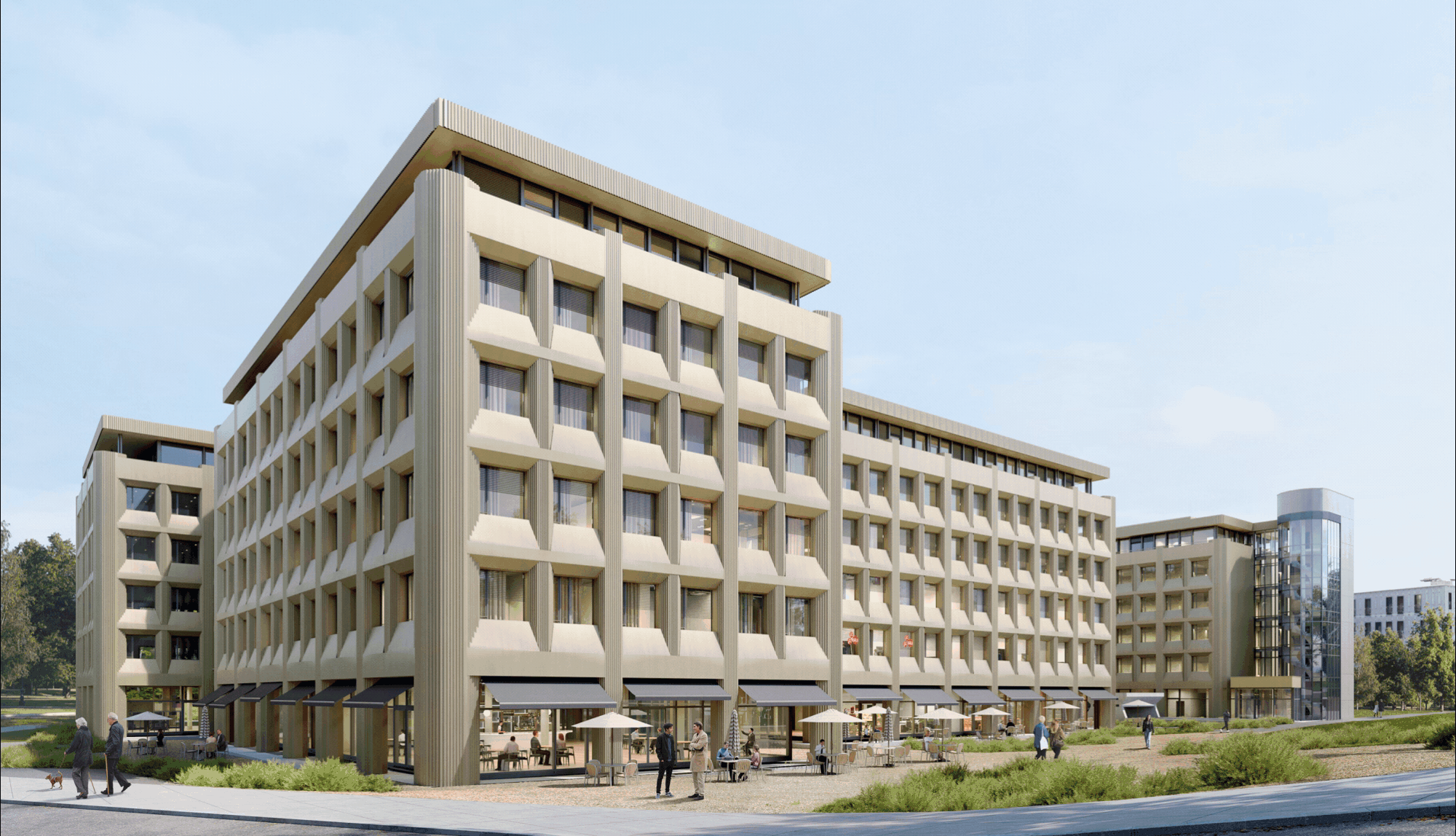 The hub-and-spoke architectural design ensures smooth circulation between the buildings and encourages exchanges between the various resident companies.