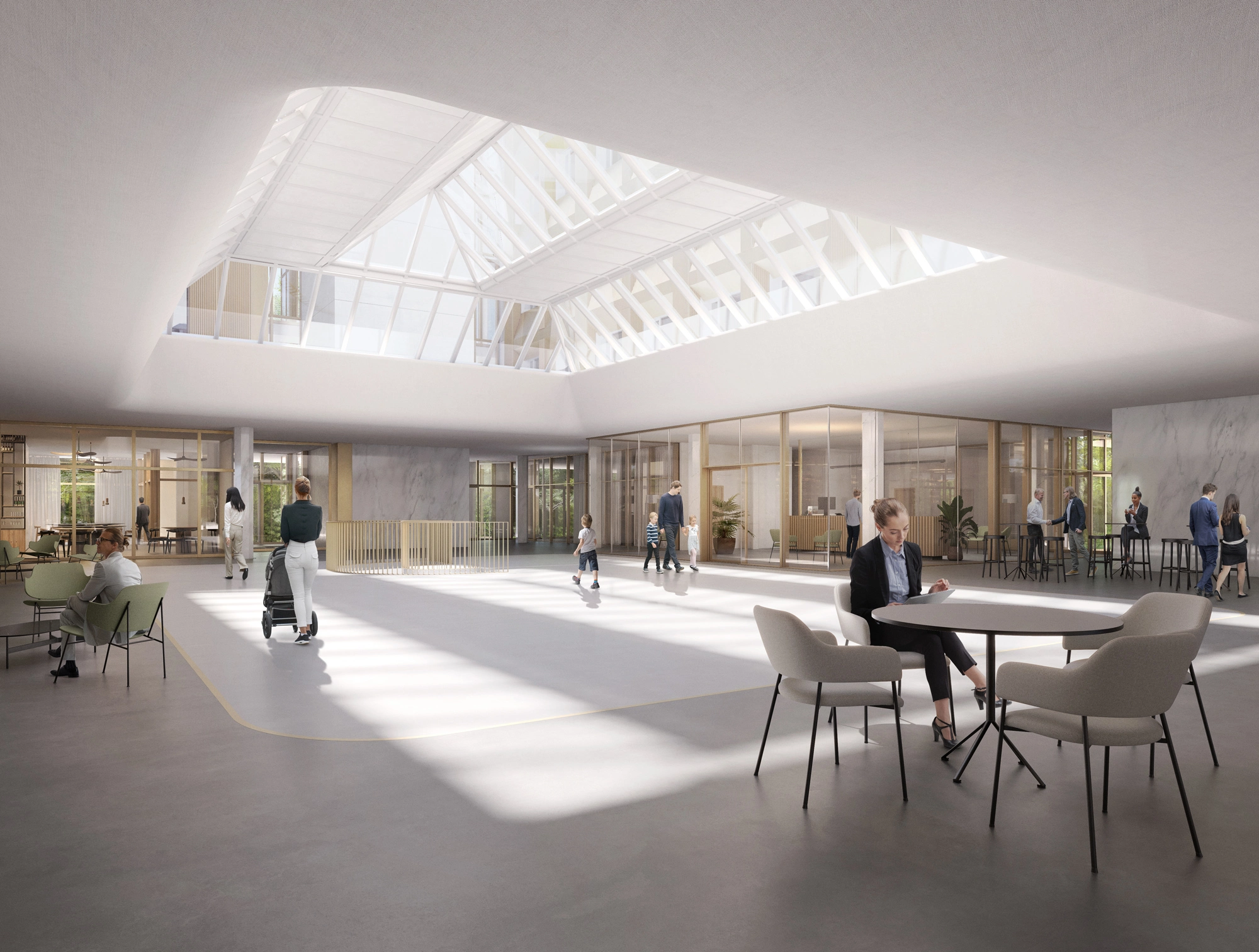 Bloom offre un cadre de travail en lien avec la nature. Un vaste parc arborisé, îlot de fraîcheur en été, participe au bien-être de tous et pourrait même accueillir des séances informelles.